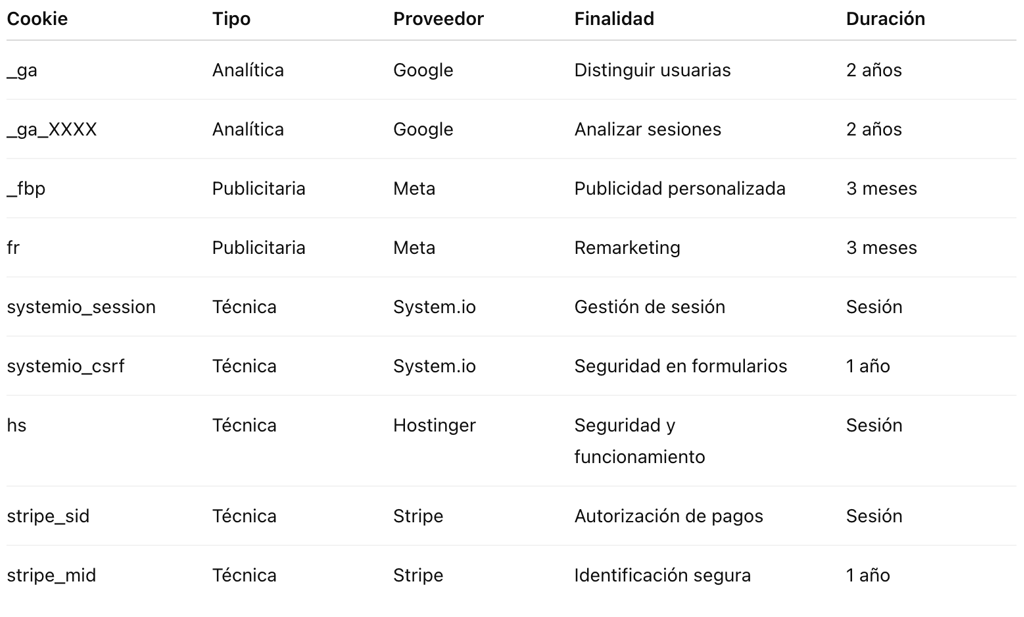 Las cookies son pequeños archivos de texto que se almacenan en tu navegador cuando visitas una página web. Sirven para recordar tus preferencias, mejorar la experiencia de navegación, analizar cómo utilizas el sitio y, en ocasiones, mostrarte publicidad adaptada a tus intereses.